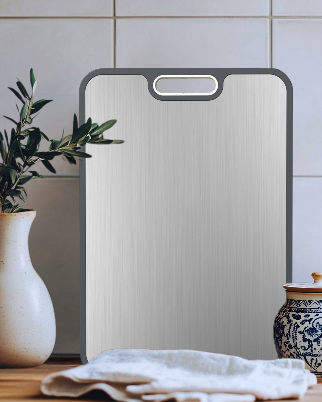 This pure titanium cutting board is designed for hygienic and practical everyday cooking. The double-sided surface helps separate raw and cooked foods, while the non-porous material makes cleaning quick and easy. Ideal for daily kitchen use.